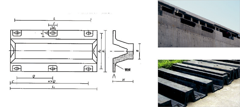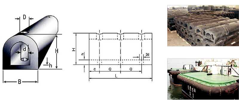 1.反力、吸能量適中 2.底部寬度小,特別適用于框式碼頭 3.重量輕,安裝維護方便| 型號 | H | B | L | 孔數(shù) | Q | C | h | D | D |