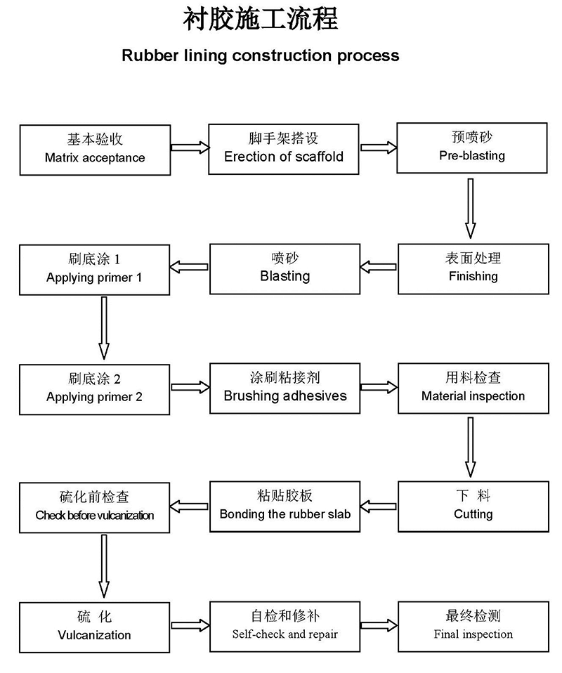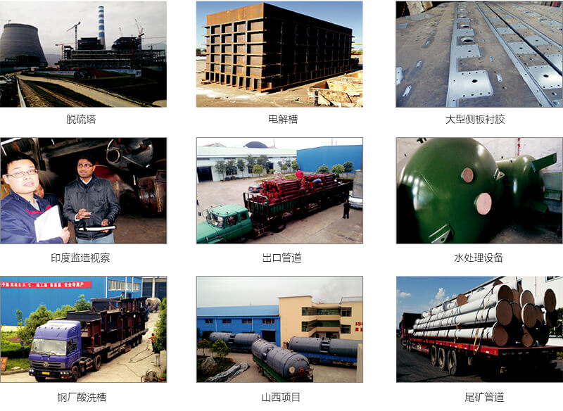 | 熱水硫化橡膠襯里 | 熱水蒸汽本體硫化 | 接觸腐蝕介質(zhì)的大型槽、罐等設(shè)備 | 現(xiàn)場施工 | |